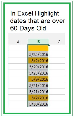 Highlighting days over 60 days old in Excel![]() When you have a list of dates in Excel, it is sometimes important to have the dates highlighted when they become significant. We have a list of dates here that are billing dates. If we have not received payment on these invoices in 2 months, they will be highlighted. With these dates highlighted; action can be taken regarding these invoices. This would also be effective with service dates on equipment so you would know when the next service was required. These would be highlighted after six or twelve months.