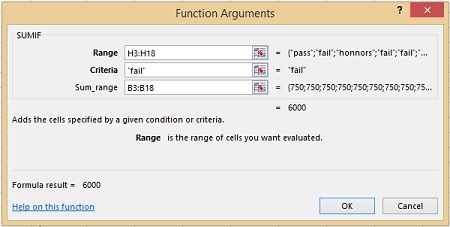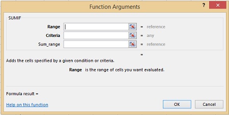 We will use the function dialog box by clicking on the fx and typing in sumif in the search for funtion box