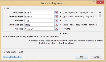 We will use the function dialog box by clicking on the fx and typing in sumifs in the search for funtion box
